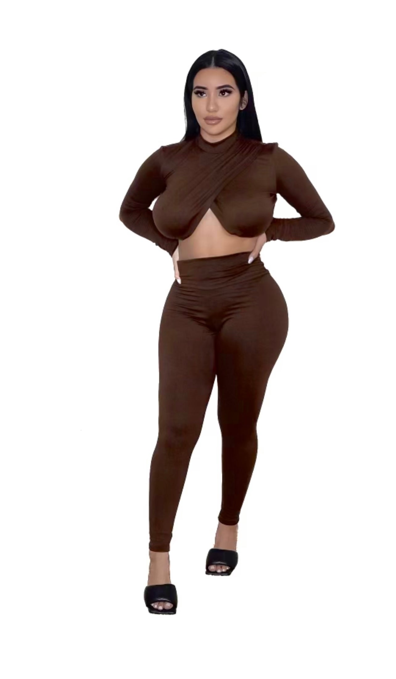 2 piece set, Draped top with high waisted leggings.